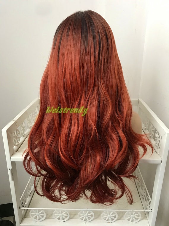 Dark Roots Red Orange Wine Red Ombre Wigs Long Wavy Hair 3 Etsy Australia